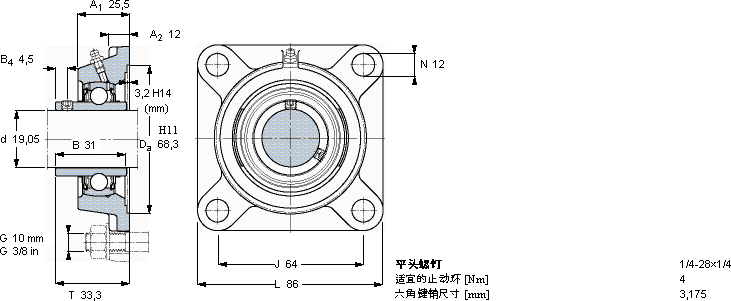 SKF FYJ 3/4 TF轴承尺寸图纸