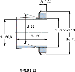 | 50,8 | 55 | 75 | 59 | W 55x1/19 | 2 | 0,36 | HE 2311 B | HM 11 | MB 11 | - | |