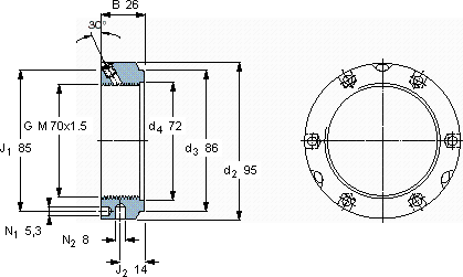 | 70 | 86 | 26 | M 70x1.5 | 490 | 0,62 | KMTA 14 | B 95-100 | M 8 | 18 | |