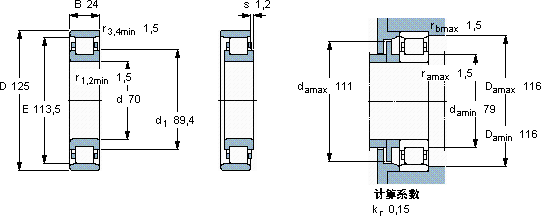 N 214 ECP *轴承-SKF N 214 ECP *轴承尺寸、图纸、价格