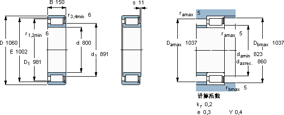 SKF NCF 29/800 V轴承尺寸图纸