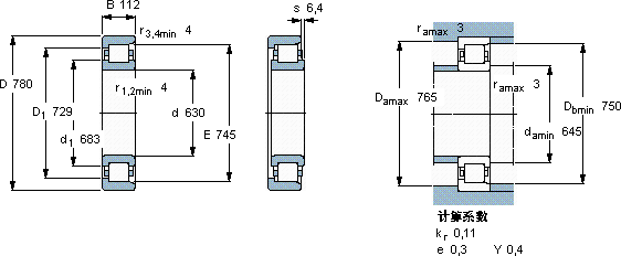 NF 38/630 MB轴承-SKF NF 38/630 MB轴承尺寸、图纸、价格
