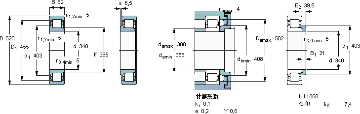 SKF NJ 1068 MA轴承尺寸图纸