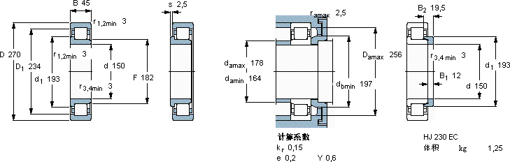 NJ 230 ECM *轴承-SKF NJ 230 ECM *轴承尺寸、图纸、价格