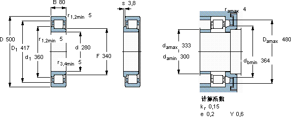 NJ 256 MA轴承-SKF NJ 256 MA轴承尺寸、图纸、价格