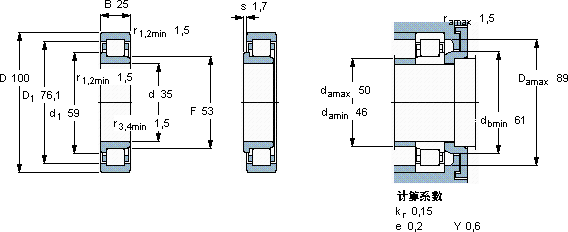 | 35 | 100 | 25 | 76,5 | 69,5 | 9 | 8000 | 9500 | 1,05 | NJ 407 TN9 | - | ||