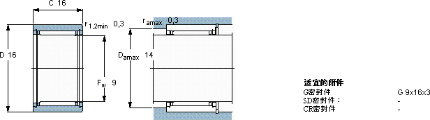 NK 9/16 TN轴承-SKF NK 9/16 TN轴承尺寸、图纸、价格