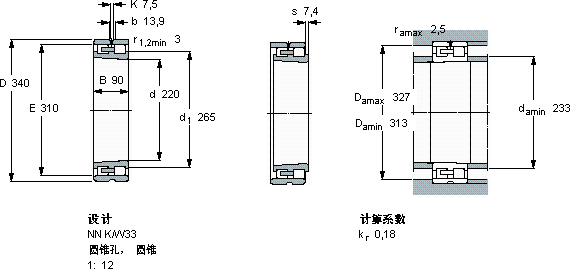 NN 3044 K/SPW33轴承-SKF NN 3044 K/SPW33轴承尺寸、图纸、价格