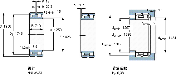 NNU 41/1250 M/W33轴承-SKF NNU 41/1250 M/W33轴承尺寸、图纸、价格