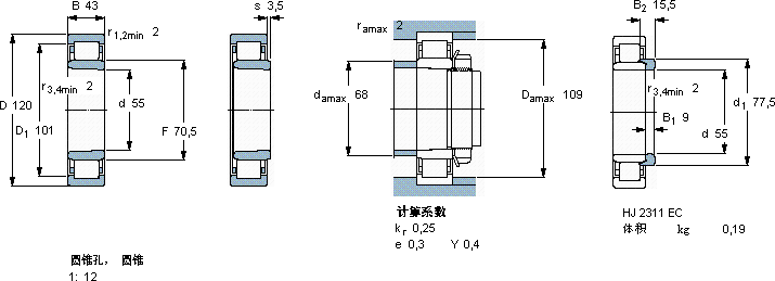 SKF NU 2311 ECKML *轴承尺寸图纸