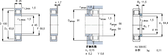 NU 309 ECNP *轴承-SKF NU 309 ECNP *轴承尺寸、图纸、价格