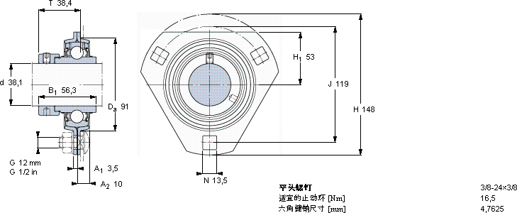 PFD 1.1/2 WF轴承-SKF PFD 1.1/2 WF轴承尺寸、图纸、价格