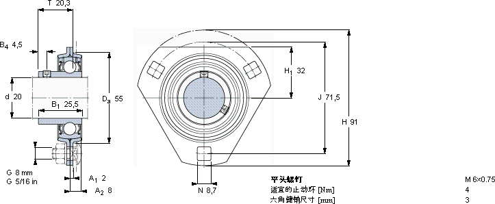 SKF PFD 20 RM轴承尺寸图纸