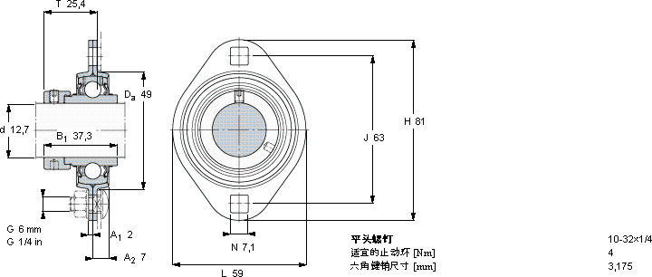 | Y-型轴承带法兰单元, 冲压钢轴承座,偏心锁定轴环 | ||||||||||||