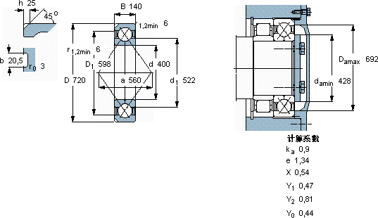 QJ 1280 N2MA轴承-SKF QJ 1280 N2MA轴承尺寸、图纸、价格