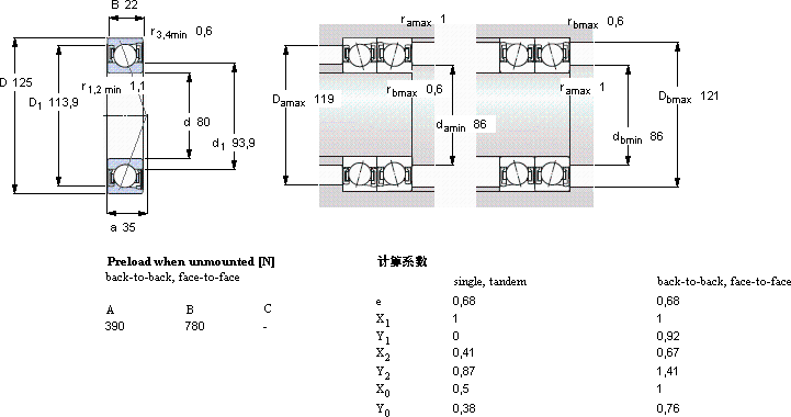 | 80 | 125 | 22 | 62,4 | 58,5 | 2,45 | 11000 | - | 0,71 | S7016 ACD/HCP4A | - | |