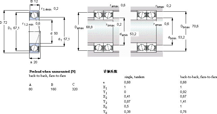 | 50 | 72 | 12 | 12,7 | 9,8 | 0,415 | 16000 | - | 0,13 | S71910 ACD/P4A | - | |