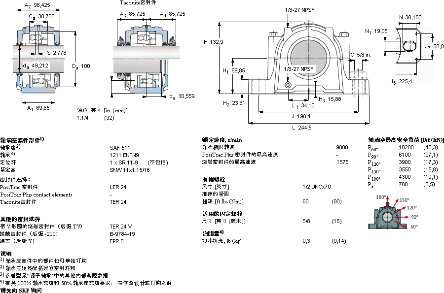 型号基本负荷额定值,主要数据尺寸迷宫密封件PosiTrac 密封件PosiTrac Plus密封件Taconite密封件