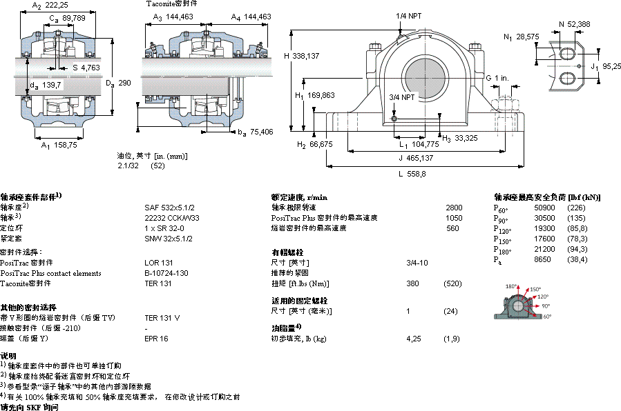 SKF SAF 22532x5.1/2轴承尺寸图纸