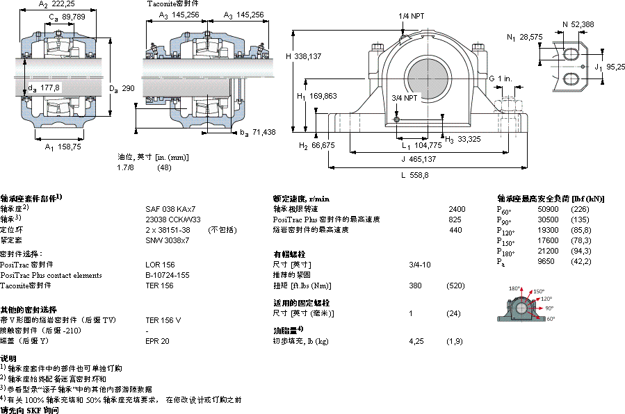 SAF 23038 KAx7轴承-SKF SAF 23038 KAx7轴承尺寸、图纸、价格