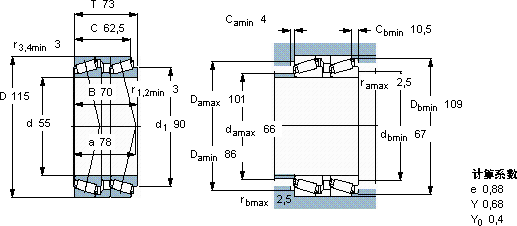 T7FC 055T73/QCL7CDTC10 *轴承-SKF T7FC 055T73/QCL7CDTC10 *轴承尺寸、图纸、价格