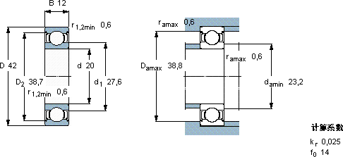 | 20 | 42 | 12 | 7,93 | 4,9 | 0,212 | 38000 | 19000 | 0,069 | W 6004-2Z | |