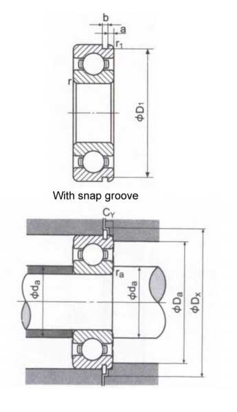 | Dimension of snap groove and snap ring | |